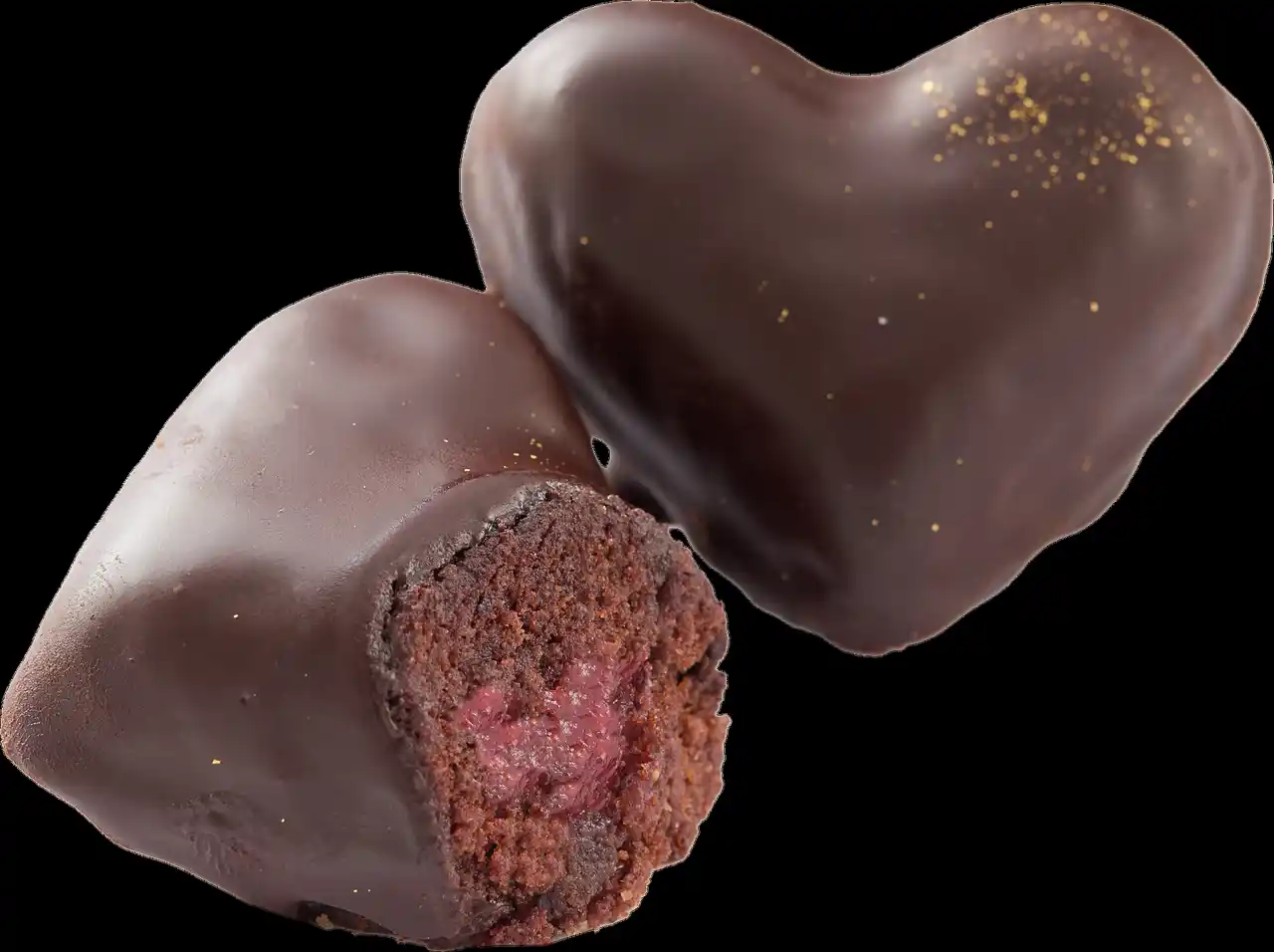 フィナンシェ生地に生いちごコンフィチュールを重ね焼き上げ、甘酸っぱい粒々いちごのチョコレートで仕上げました。 |