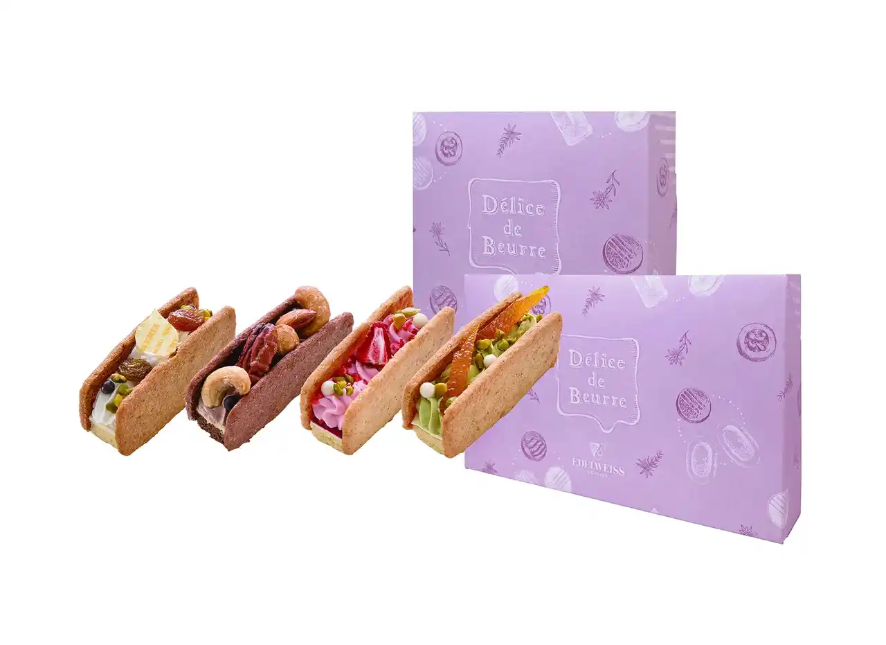 6F限定販売の『Sable Noisette Luxe』は、ジェノワーズ生地やソースを重ね、なめらかな食感のバタークリームとそれぞれの素材を贅沢に飾り、ヘーゼルナッツパウダー入りの芳醇で奥深い香りのサブレ生地でサンドして仕上げました。フレーバーはマスカットラムレーズン、ショコラナッツ、フレーズ、ピスターシュの4種類をご用意。バレンタインシーズンだけの贅沢な味わいです。 |