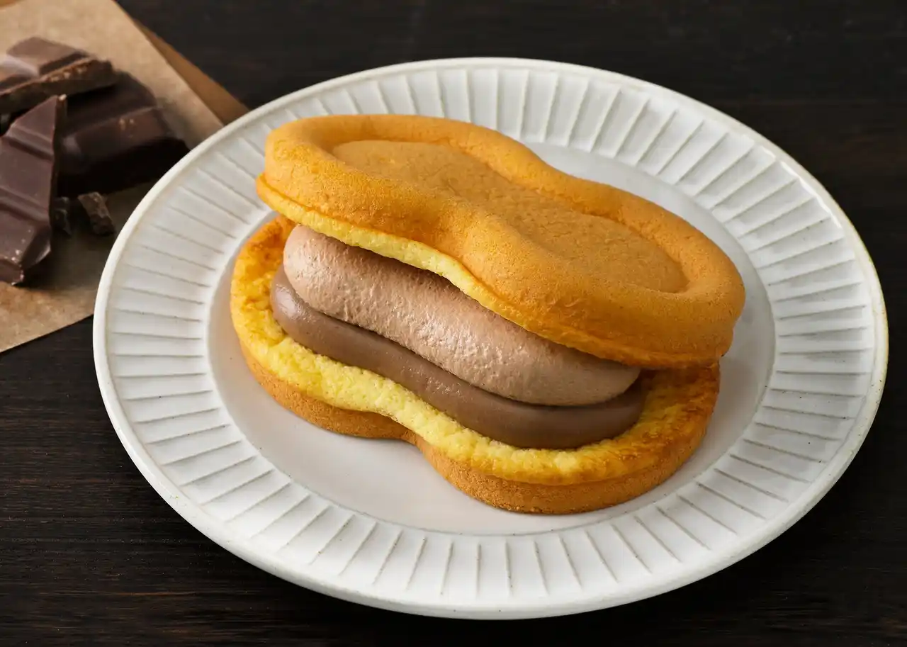 まろやかでコク深いミルクチョコカスタードと、フレッシュなミルク感とカカオが引き立つチョコホイップクリーム、しっとりふんわり焼き上げたスフレのようなワッフル生地が、やさしく口どけていく一体感をお楽しみください。 |