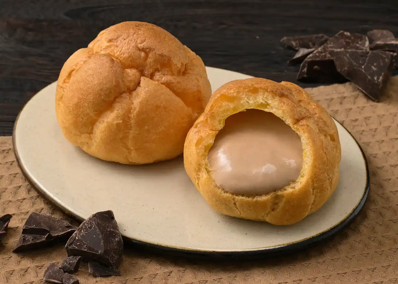 特長:ミルクとビター2種のチョコレートをブレンドして深みのある味わいに仕上げたチョコカスタードを、歯切れと口どけのよいシュー皮に詰めました。 |