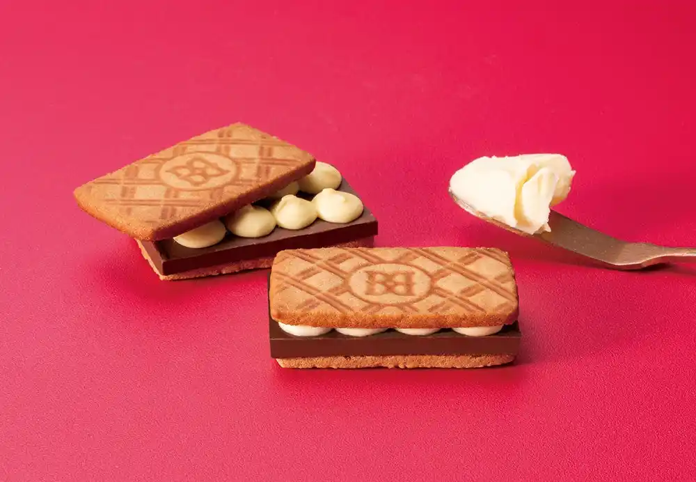 ふっくらしぼったバターホイップショコラに、アーモンドペーストを練り込んだ厚切りプラリネショコラ。バタースイーツ専門店ならではの発想で生まれた、とろけあうバターとショコラを楽しむ魅惑のサンドです。 |