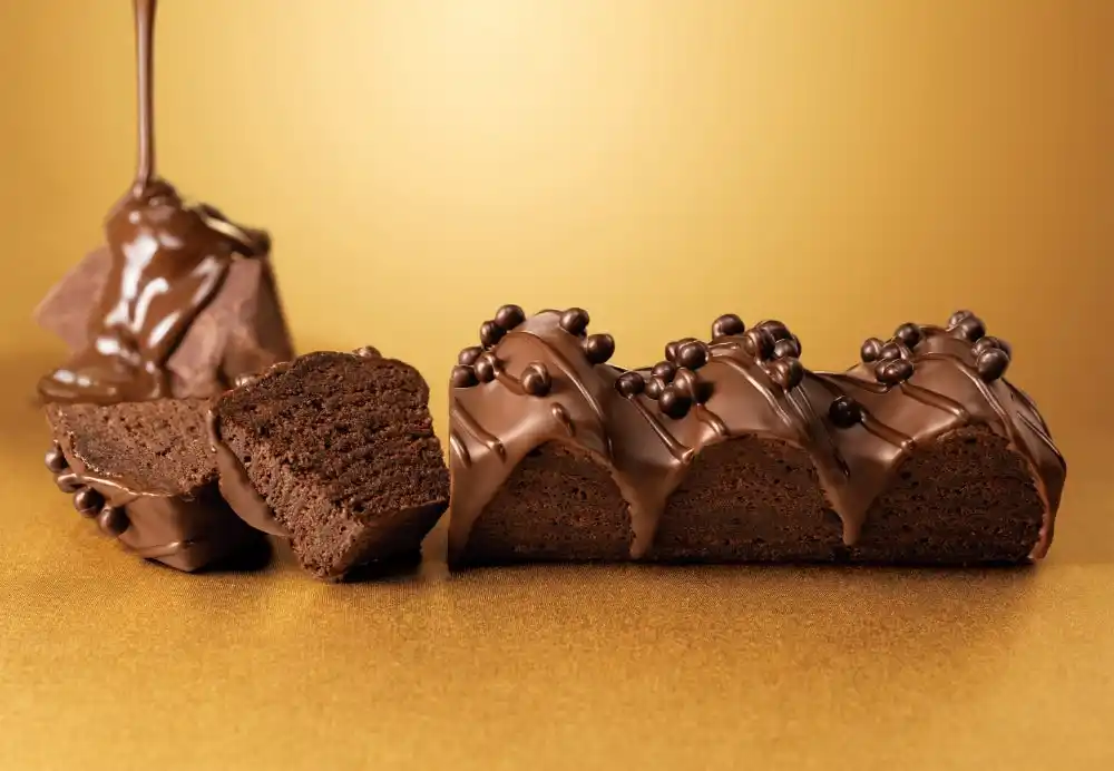 生地はねんりん家の冬の名物『マウントバーム ブラウニー』。うわがけのショコラは、炭⽕焙煎クーベルチュールをとろとろ溶かしこんだ、深いコクの“炭⽕ショコラ”。とろりと流しかけることで、外も、中も、ショコラづくしのバームクーヘンが出来上がりました。 |