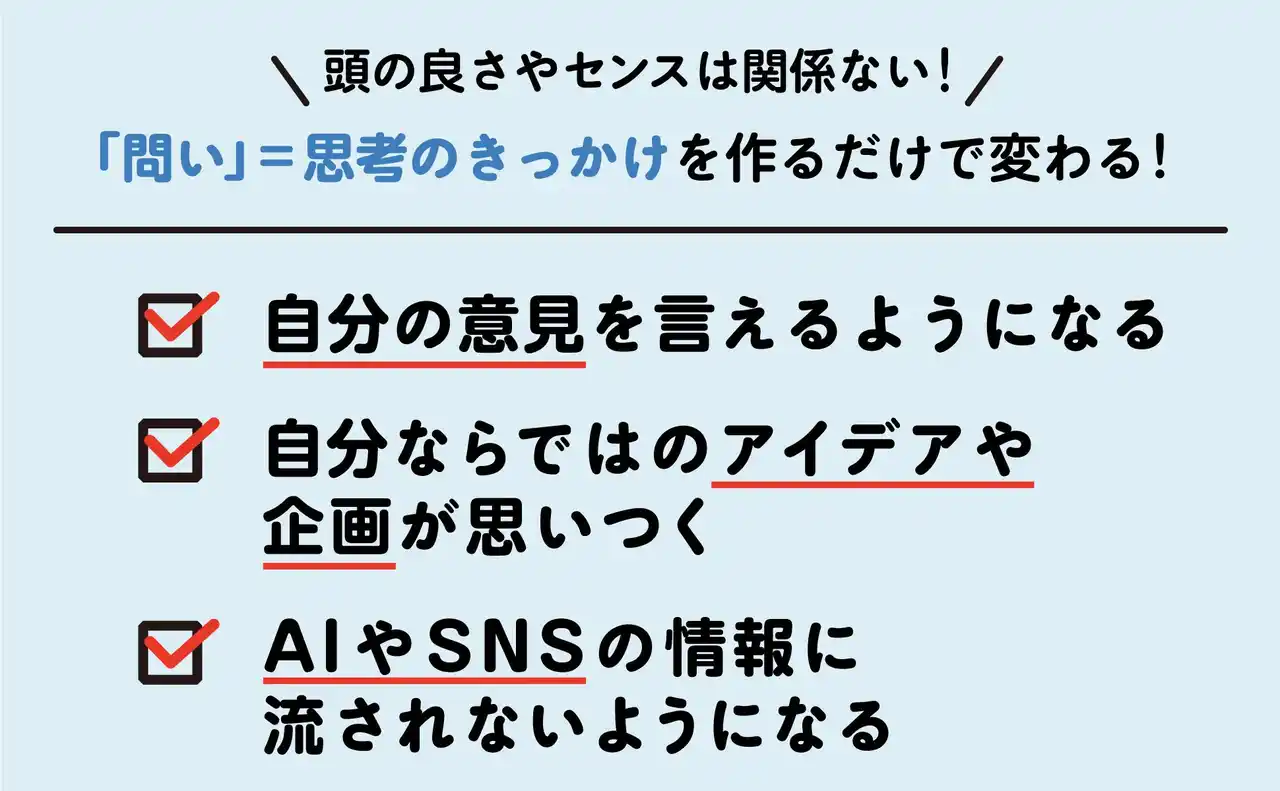 問いとは、「考える」の入り口であり、思考を動かすスイッチです。 |