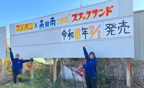 | コラボが決まり数ヶ月試作を繰り返し、生徒たちにも試食に参加いただき仕上げました。高田商業高校の校舎横には近鉄大阪線に向けて手作りの看板も設置。生徒たちの思いがこもった、優しい味のすき焼き風フィリングをサンドしたスナックサンドに仕上がりました。 | |||