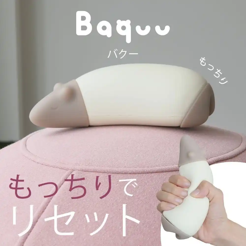 握り続けたくなるモッチリ感とツボ押し、スマホスタンド、リストレストなど多機能な「デスクの相棒」”Baquu” |