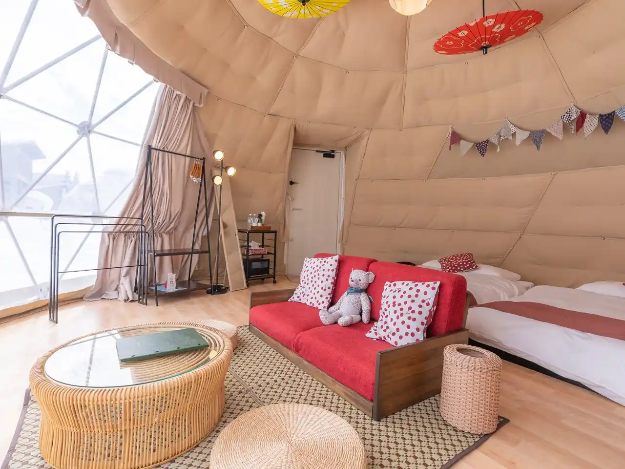 | ・こたつ(冬季) or ピクニックセット(春季)貸出: 冬はテント内でぬくぬく団らん、春は外でお花見を満喫。 | |||||||||||
