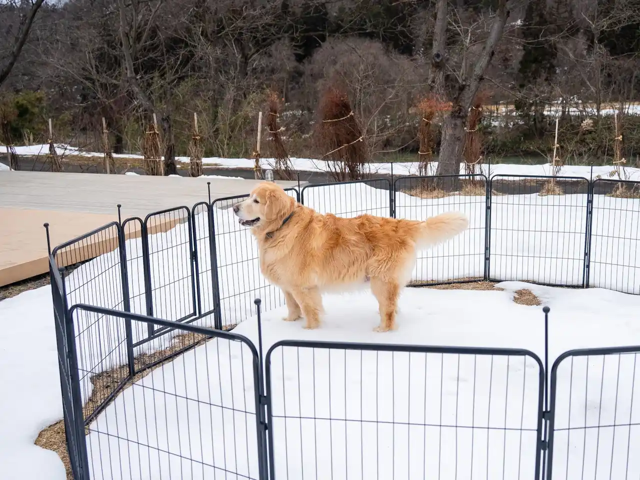 | ワンちゃんと一緒に宿泊できるテントの場所を、施設内で最も奥に位置するエリアへと変更いたしました。テント内にはワンちゃん用の備品としてトイレ・トイレシート・ウォーターボウル・フードボウル・お散歩セットを完備。外にはドッグサークルも導入し、これまで以上にのびのびと過ごしていただけます。 | |||||||||||