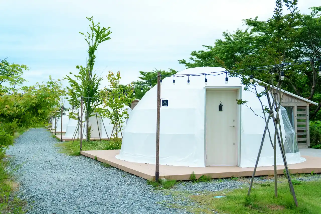 | yamagata glam は、山形県村山市にある全8室のプライベートなグランピング施設です。最上川のすぐ横に位置する絶好のロケーションで「山形の里山・農村の文化を体験する」をコンセプトに、最上川舟下りなど四季折々の体験アクティビティと山形の食材を盛り込んだお食事を提供しています。 | |||||||||||