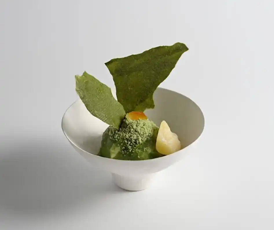 よもぎジェラート 銘菓「よもぎ若草」に使用する島根県産よもぎを贅沢に用い、オーガニックホワイトチョコレートと合わせました。よもぎ本来の香りと旨味が、やさしく広がります。 |