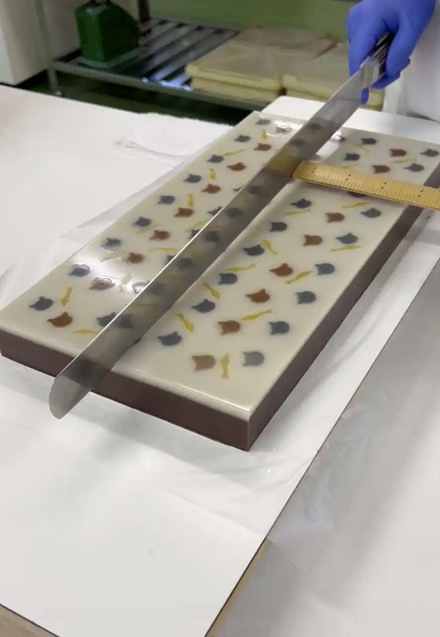 株式会社 彩雲堂(本社所在地:島根県松江市、代表取締役社長:山口周平)は、バレンタインに合わせて、ビターとミルクの2種のチョコレートと小豆羹を合わせた羊羹に白羊羹を重ねた2層仕立てのチョコレート羊羹「まちねこ」を、今年も販売します。 カカオの香りを生かしながら、羊羹ならではのなめらかな口どけと後味の軽さを大切に仕立てました。 |