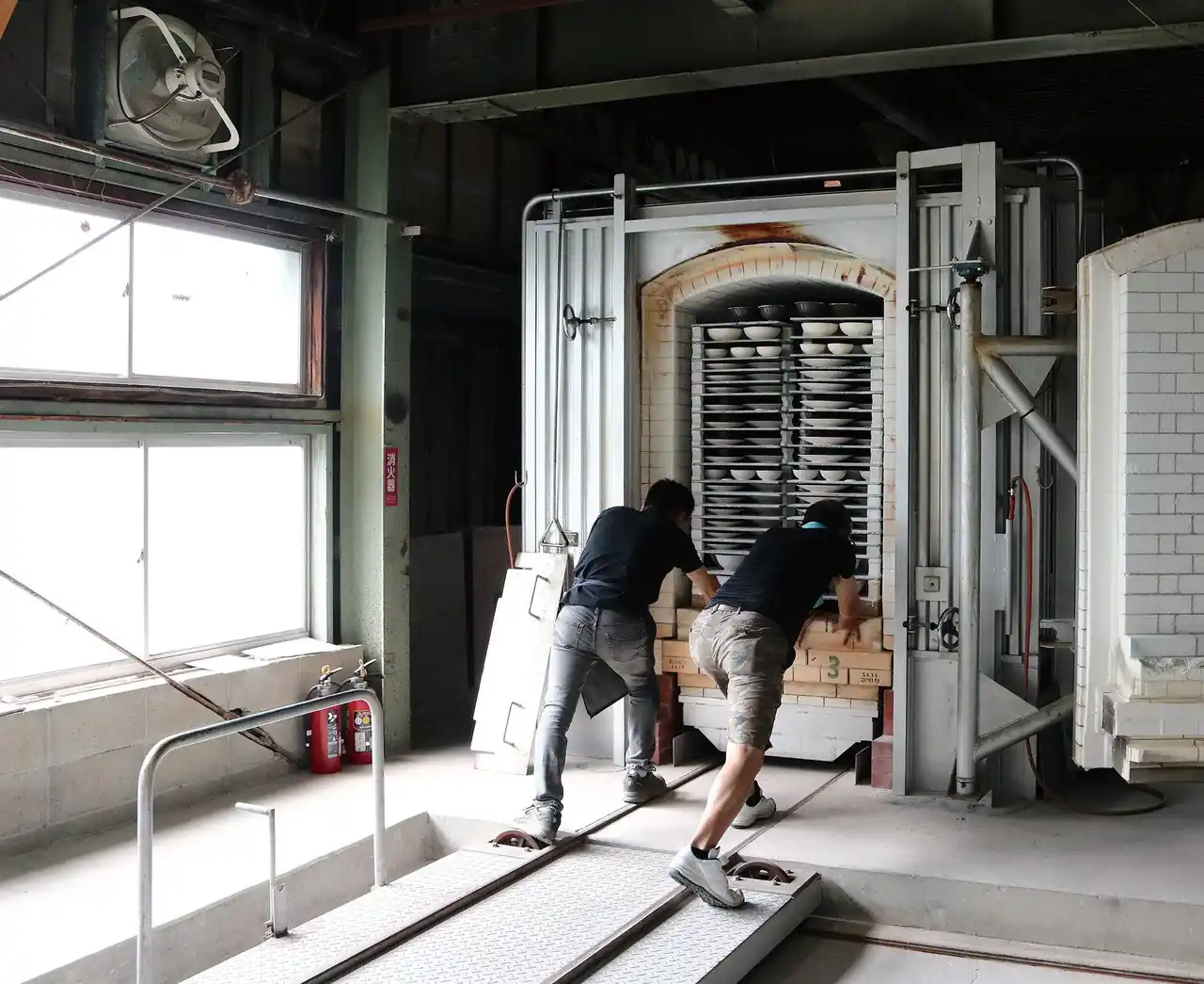 波佐見焼は型作り、成形、絵付け、窯焼きなど、それぞれの工程を異なる工房が担う「分業制」で行われます。この仕組みは、専門性を高め高品質な製品を安定して生み出せるというメリットがある一方で、どこか一つの工程でも受注過多でパンクすれば、産地全体の生産ラインが停滞してしまうという課題も。 |