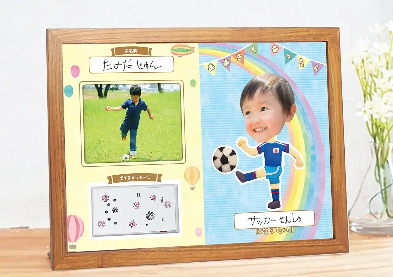| 本取り組みで無償提供される卒園記念品「おおきくなったら」は、卒園という節目に、子どもたちが“今の将来の夢”を、未来に残すことを目的とした記念品です。だんだん忘れてしまう子どもの頃の夢を、写真と音声で残し、成長後にあらためて振り返ることができる体験価値を提供します。 | |||