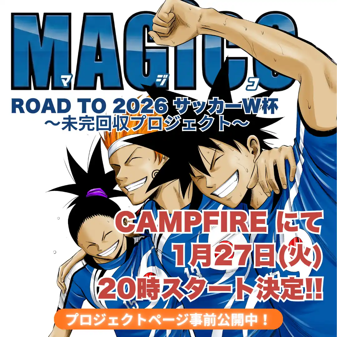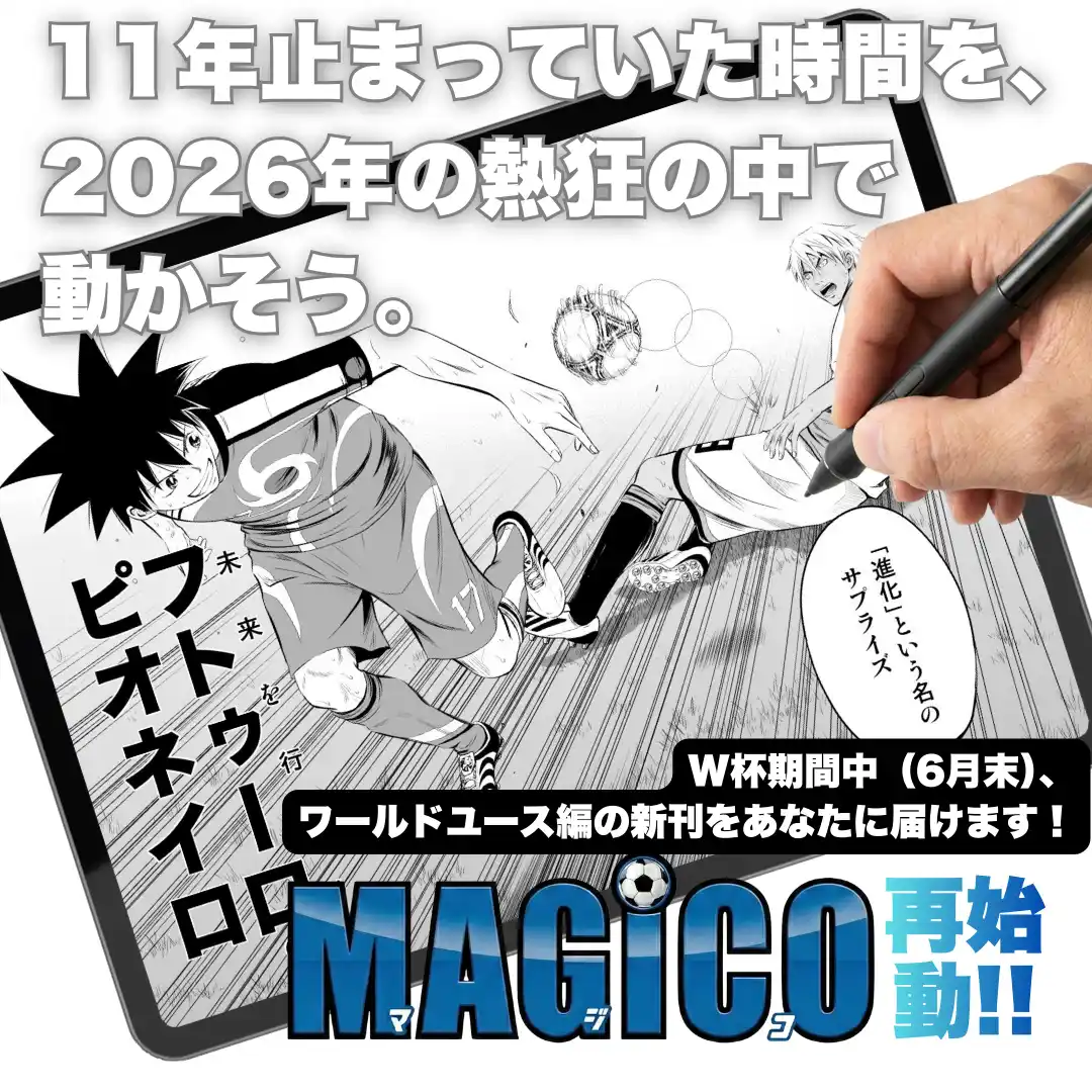 株式会社PiCSTORY(所在地:宮城県仙台市青葉区)は、雑誌休刊により未完となったサッカー漫画『MAGiCO』ワールドユース編を2026年サッカーW杯開催中に“一冊で読み切れる形”で完成させる制作プロジェクトで、本日クラウドファンディングプラットフォーム「CAMPFIRE」にて公開されます。 |
