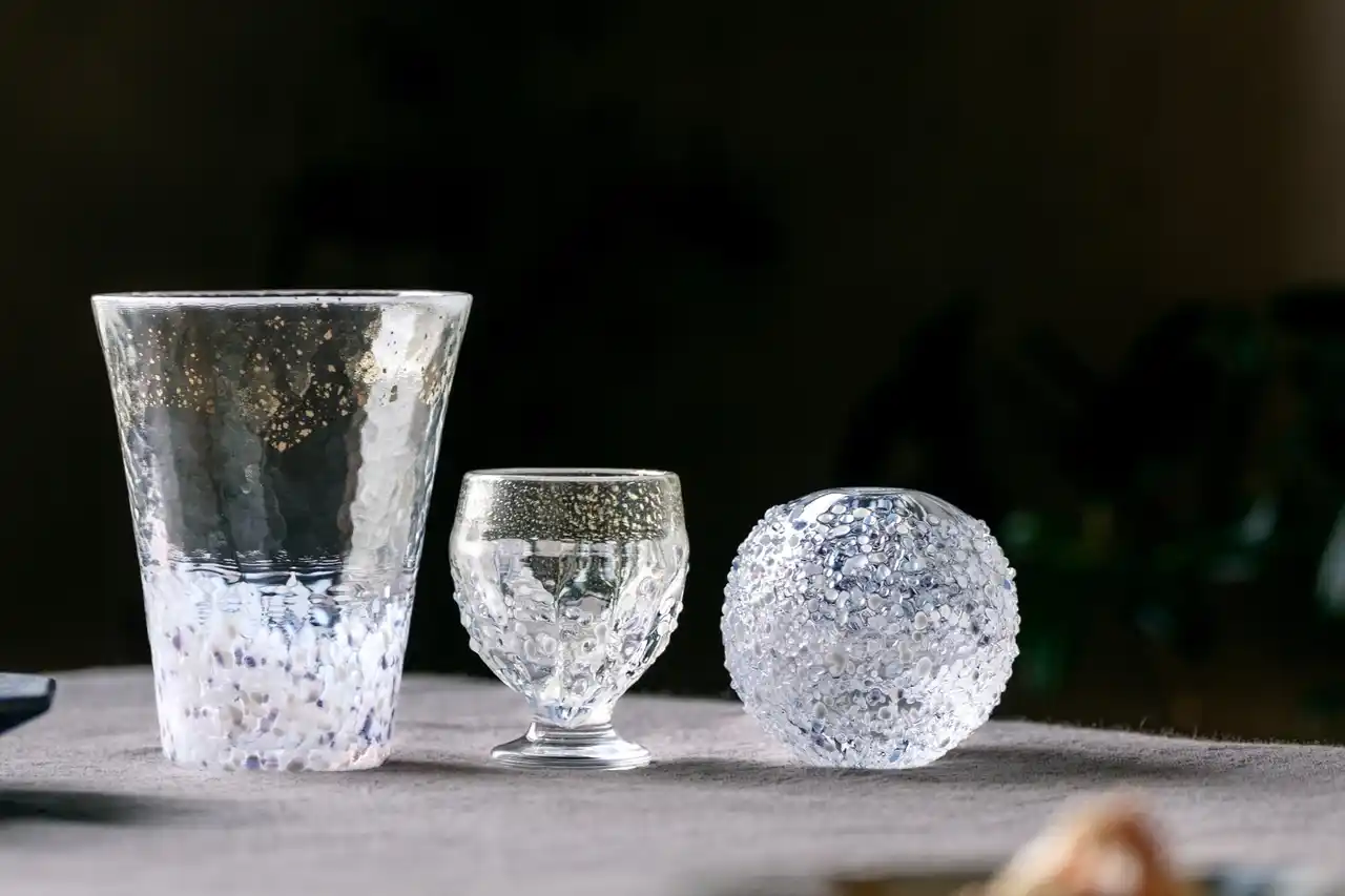 | 従来の津軽びいどろが持つ多彩な色づかいとは一線を画し、本シリーズでは白を基調とした透明感のある色合いを採用。控えめに配した金箔のあしらいや、絶妙な粒の残し方、淡く陰影の奥に宿る紫のニュアンスなど、職人の高度な技術によって、雪が重なり合うことで生まれる奥行きと静かな陰影を表現しています。積もった雪がつくる澄んだ空気感や、冬の静寂をやさしく感じさせる想いが込められたシリーズです。現在、次なる展開も構想されています。 | ||||||||||||