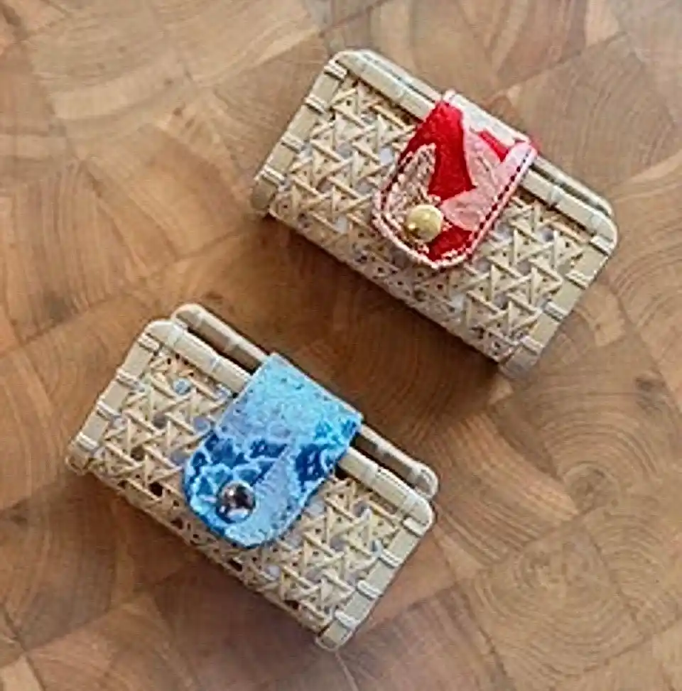 別府市竹細工伝統産業会館の館長でもある竹細工職人の宮坂氏が製作した名刺入れを使っている方を見て、紹介を取り次いでいただき、「DAIDAI」とのコラボレーションが実現した。 |