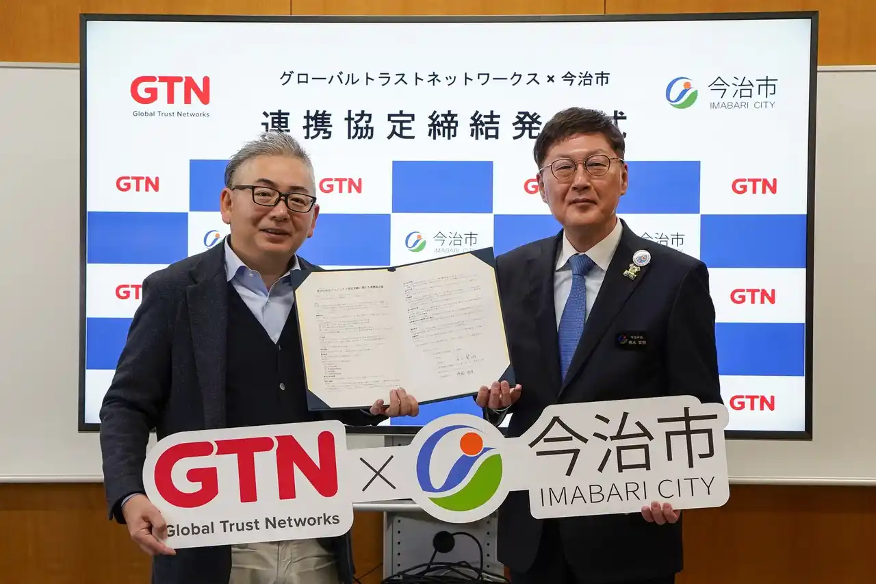 2026年1月26日には、今治市役所で「多文化共生プロジェクト実証実験に関する連携協定締結発表式」が開催されました。式典では、GTNの後藤裕幸代表取締役社長と徳永繁樹今治市長が協定書に署名し、新たに始まる多文化共生社会の実現に向けた取り組みについて抱負を語りました。 |
