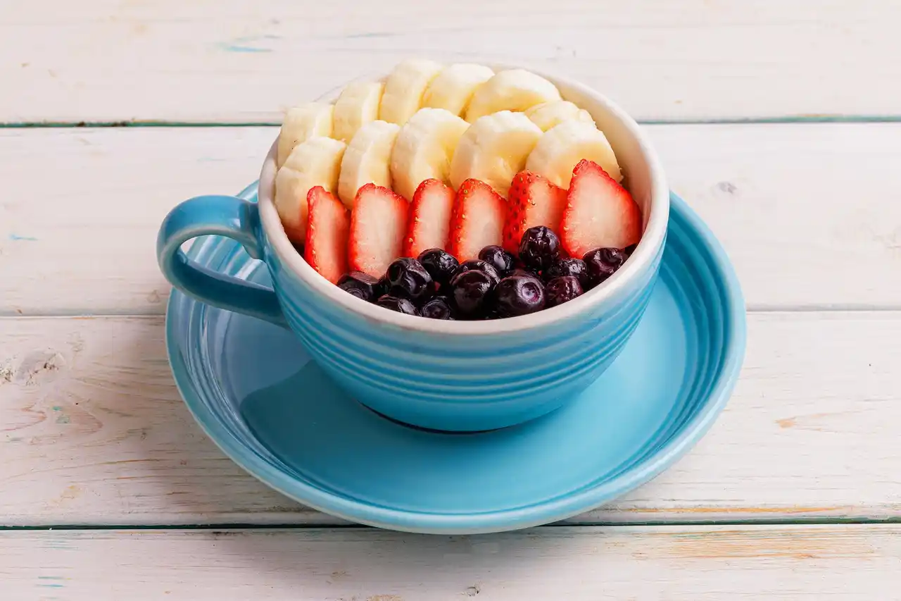 甘酸っぱいアサイーベリー味パウダーと、ホイップをベースにブルーベリーの果肉を加えたディップソースをつけて一口食べればハワイ気分に! |