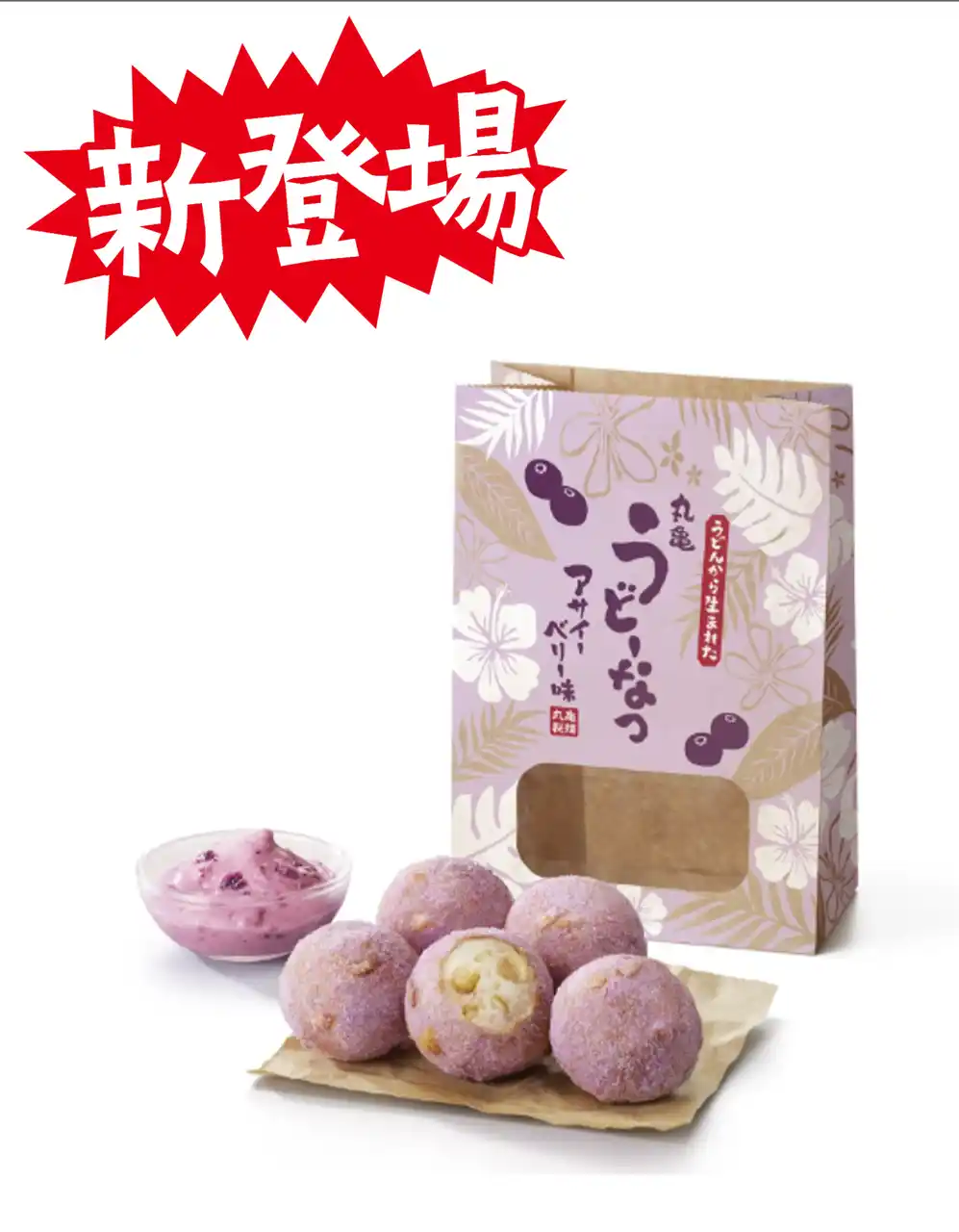 株式会社丸亀製麺(本社:東京都渋谷区、代表取締役社長:山口 寛)が展開する、食の感動体験を探求し、手づくり・できたてにこだわる讃岐うどん専門店「丸亀製麺」は、うどん生まれの「丸亀うどーなつ」の新味「アサイーベリー味」を2025年7月17日(木)から全国の丸亀製麺にて販売開始します。 |