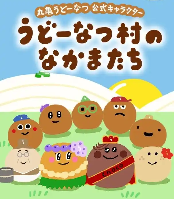 「丸亀うどーなつ」の魅力をより多くのお客さまにお届けする公式キャラクター「うどーなつ村のなかまたち」。 「うどーなつ村のなかまたち」がいると、少しだけ元気になれたり、ほっとできたり。いつもの仲間たち「るんもっち」「うるもっち」「のびもっち」「ほわもっち」「ぷんもっち」たちが暮らすうどーなつ村の日常を通じて、「丸亀うどーなつ」ならではの魅力や、最新情報をお届けします。キャラクターデザインは、アニメーション作家の合田 経郎さんの描き下ろしです。 |