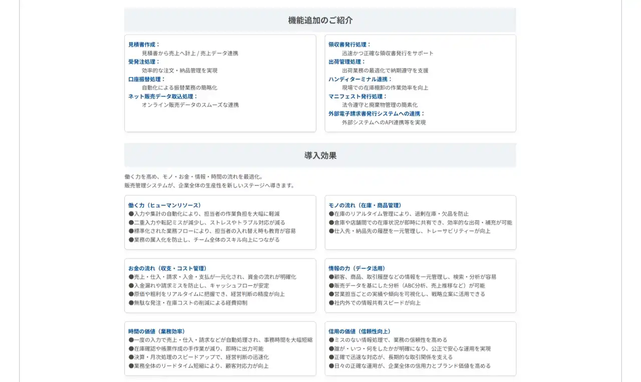 課題別支援メニュー: 販売管理、工程管理、業務効率化など、現場の悩みに直結するメニューの紹介。 |