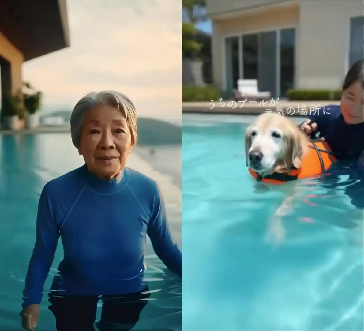 従来の「贅沢品」としてのプールの概念を覆し、高齢者や老犬の機能回復を支える「水中歩行リハビリ」の場を提案します。 |