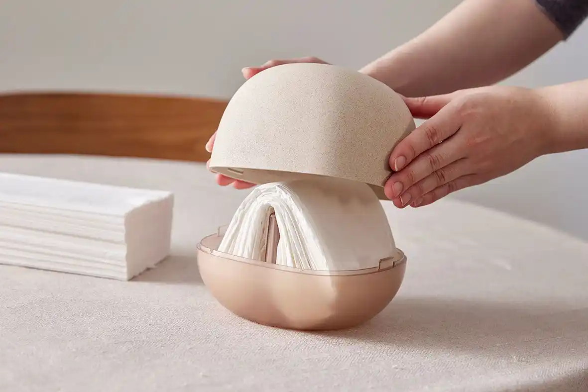 | ボックスティッシュを詰め替えて、すっきりと置けるティッシュケース。軽やかなツートーンデザインがアクセントになり、残量をさりげなく確認できます。ティッシュを二つ折りにして収めることで、ボックスティッシュそのままよりも省スペースに。ケースの適度な重さで最後の1枚まで心地良くお使いいただけます。 | |||||||||||||||