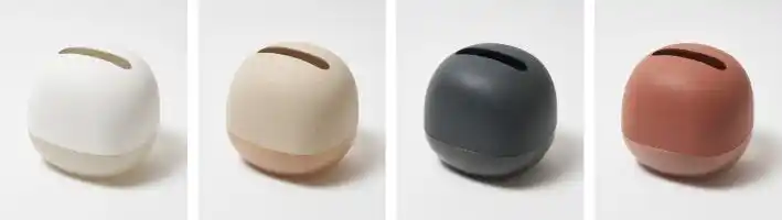 | プロダクトに採用したバイオプラスチック素材「TEXa(テクサ)」は、本来廃棄されるはずのお米のもみ殻を多く含むため、石油由来のプラスチックの使用量を約40%削減しました。細かいお米のもみ殻が見えることで、一般的なプラスチックのイメージとは異なるナチュラルで優しいニュアンスを表現しています。再生ポリカーボネート「DReC PC(ダイレックPC)」は透明感が美しい素材で、自社で発生する廃材をリサイクルしています。サステナブル素材ならではの表面感や個体差は表情の違いとしてお楽しみいただけます。 | |||||||||||||||