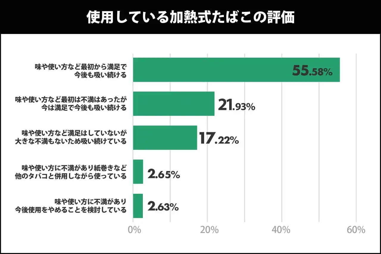 加熱式たばこ利用者の満足度:95%が「継続利用」を意向 |