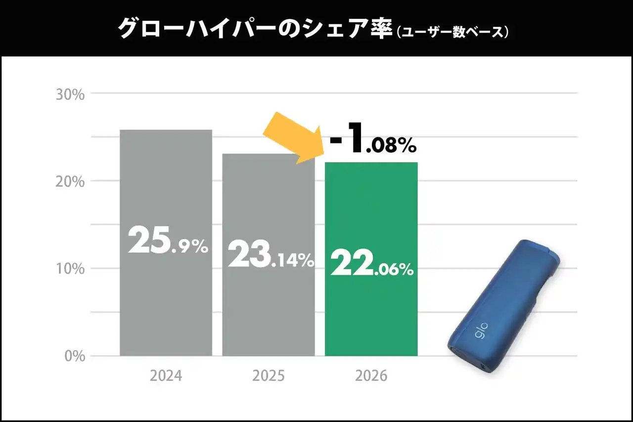■glo hyper(グローハイパー):シェア22.06%を維持。圧倒的なコスパが武器 |