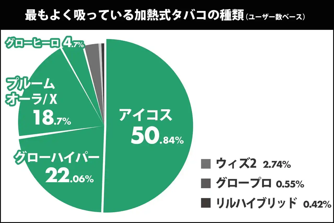 本調査の結果、加熱式たばこの市場シェアで長年首位を独走してきた「IQOS(アイコス)」のユーザーシェアが昨年比で約5%減少。 |