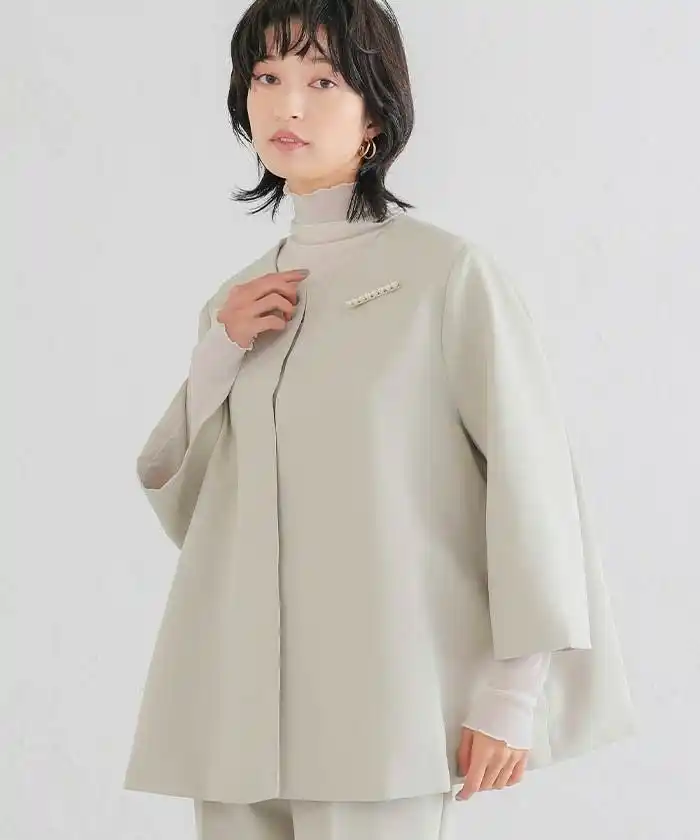 ジャケットとパンツのセットで9,980円(税込・送料無料)という「上質・低価格」を実現しました。セットアップとしての着用はもちろん、ジャケットをワンピースに合わせたり、パンツをニットに合わせたりと単品使いもしやすく、セレモニーからデイリーまで活躍します。 |