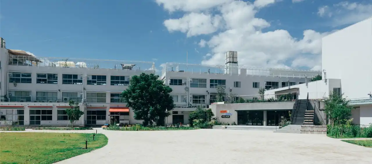 会場のHOME/WORK VILLAGEは、「暮らし(HOME)」と「仕事(WORK)」を見つめ直し、私たちの社会に残された「宿題(HOME WORK)」を紐解いていくというコンセプトのもと、旧池尻中学校を活用してつくられた複合施設です。 |