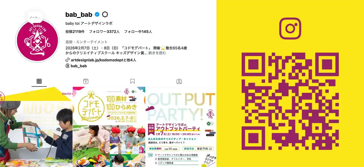 インスタグラム:@bab_bab(アートデザインラボでのレビュー動画、制作風景を投稿中) |
