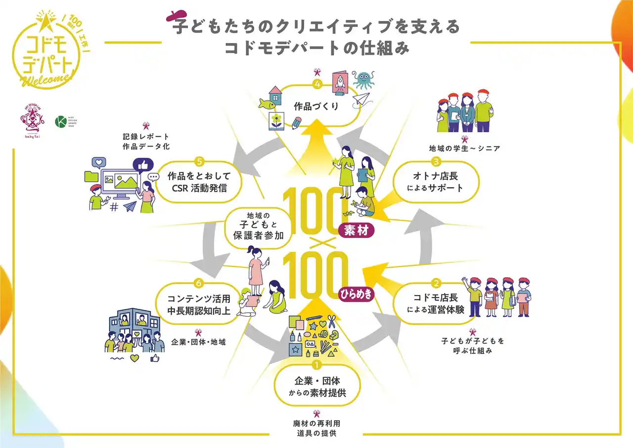 世代や立場を超えて、誰もが自由にクリエイティブになれる共創の場・それがコドモデパートです。 |