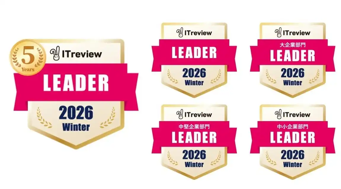 1月に発表された「ITreview Grid Award 2026 Winter」では、ITreviewに集まった約15.1万件のレビューをもとに、顧客満足度と認知度の双方が優れた製品を「Leader」として表彰、バッジが発行されています。ITreviewのLeaderは多くの利用者から支持を得ている証であり、大企業や中堅企業、中小企業といった各企業規模のユーザーから高評価だった場合にも、大企業部門のLeader、中小企業部門のLeaderなどと称号が与えられています。 |
