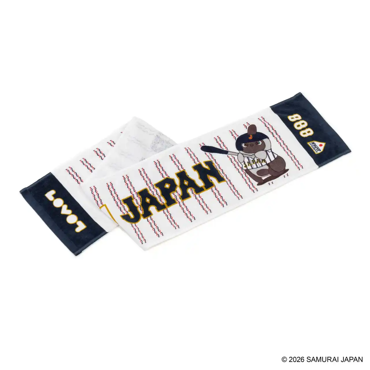 バッターに扮したかわいらしいLOVOTをプリントした、スポーツ観戦には欠かせないマフラータオル。大きな「SAMURAI JAPAN」のロゴ、「無双ストライプ」に加え、今回のコラボのための「LOVOT」ロゴもデザインされています。高品質の証しである今治ブランドタグも付いて、クオリティにもこだわりました。 |