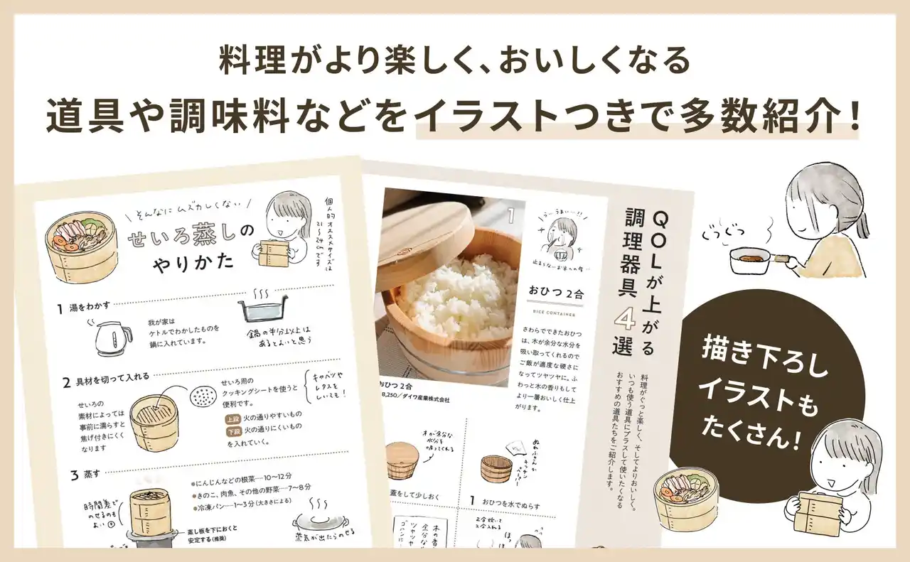 uno 手書きの文字と柔らかい雰囲気のイラストで日々の幸せをSNSに投稿。イラストや絵日記形式で食について綴っている。せいろの使い方やおしゃれなレシピが人気を集め、現在総フォロワー数は12万人を超える(2025年12月現在)。 X @_unobox_ Instagram @unobox |