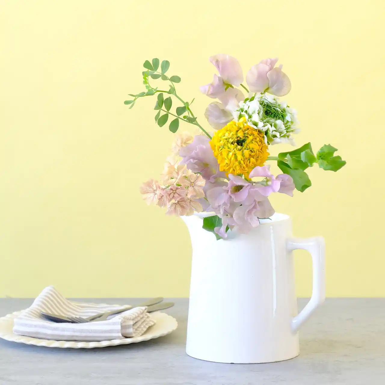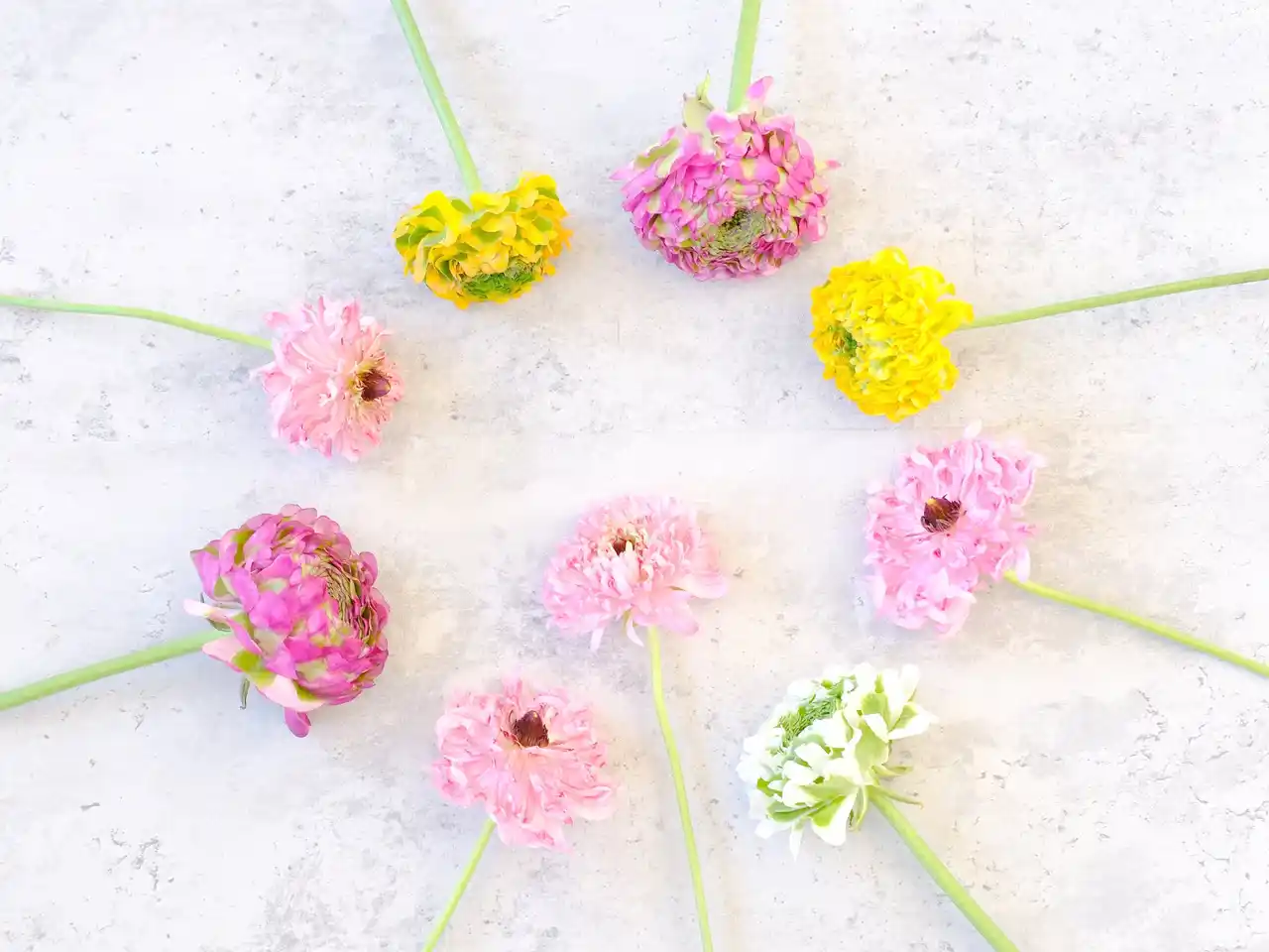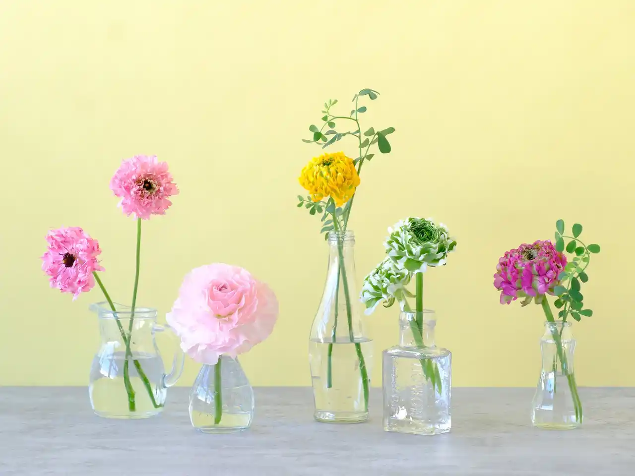 置くだけ”で映えるラナンキュラスを飾ってパーティを盛り上げましょう。終わったら茎の下をカットして水にいけて楽しんでくださいね。 |