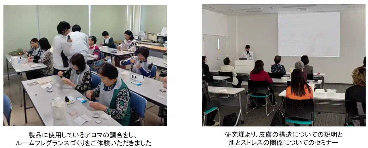 【プログラム】・役職員紹介 ・生産センター、研究開発センター見学 ・60周年ヒストリー紹介&歴史製品見学 ・研究課によるセミナー ・製品の香りのルームフレグランスづくり体験 |