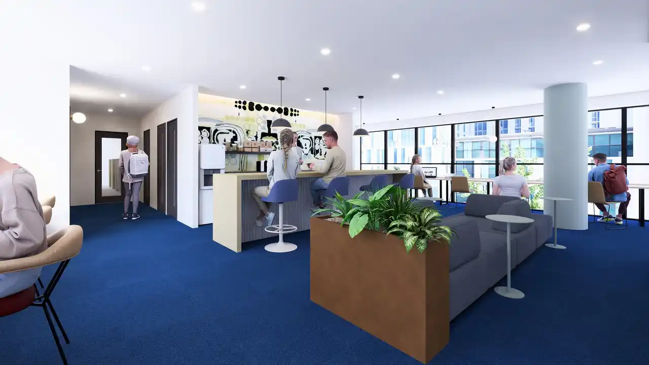 東京メトロ東西線、高田馬場駅から徒歩1分に位置する当施設は、テレワークだけでなく、通勤前後の隙間時間にも立ち寄れる立地です。国際色豊かな人や街の光景を演出したウォールアートやガラス面には、当施設を訪れる人々にとって豊かなサードプレイスを目指したいというデザイナーの思いが込められています。 |