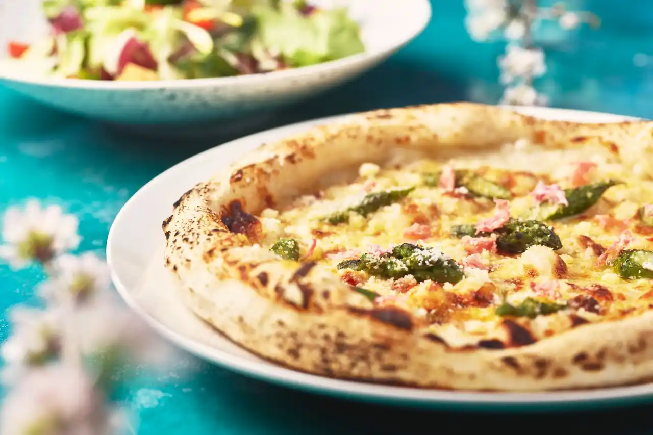 ナポリ出身エグゼクティブシェフが作るピザには桜の花びらを使用し、春に旬を迎えるアスパラガスとチーズを合わせた季節感たっぷりの逸品に仕上げます。 |