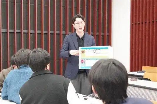 本講座は、学生の皆さまにリース産業への理解をより深めていただくとともに、リースを通じた社会課題解決に向けた考察力を養うことを目的として実施されています。当社は、この目的に沿い、ワークショップの冒頭にて身近なリース活用事例を紹介しながら、リースが環境負荷の低減や資源循環の推進、さらには持続可能な社会の実現にどのように貢献しているかについて、具体的な解説を行いました。 |
