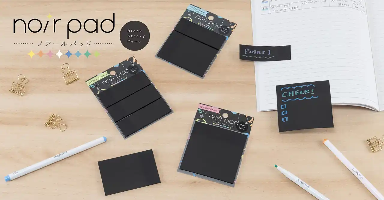ナカバヤシ株式会社(本社:大阪市中央区、社長:中林一良)は、黒い用紙にもきれいに発色する「ピュアライン」とノートに存在感を持たせる付箋「ノアールパッド」を全国で2026年2月上旬より順次発売します。 |