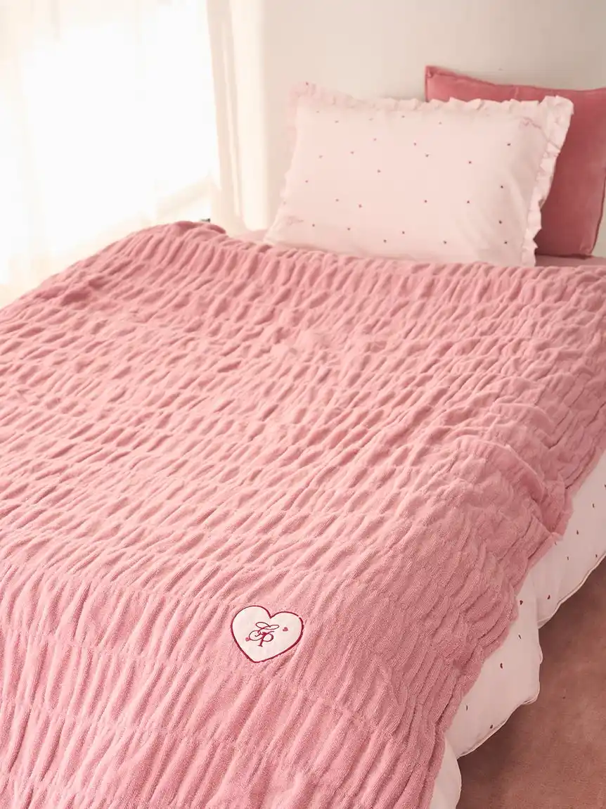 ふんわりやわらかなタオルケットや寝具とリンクしたデザインのベッドサイドポーチも展開。 |