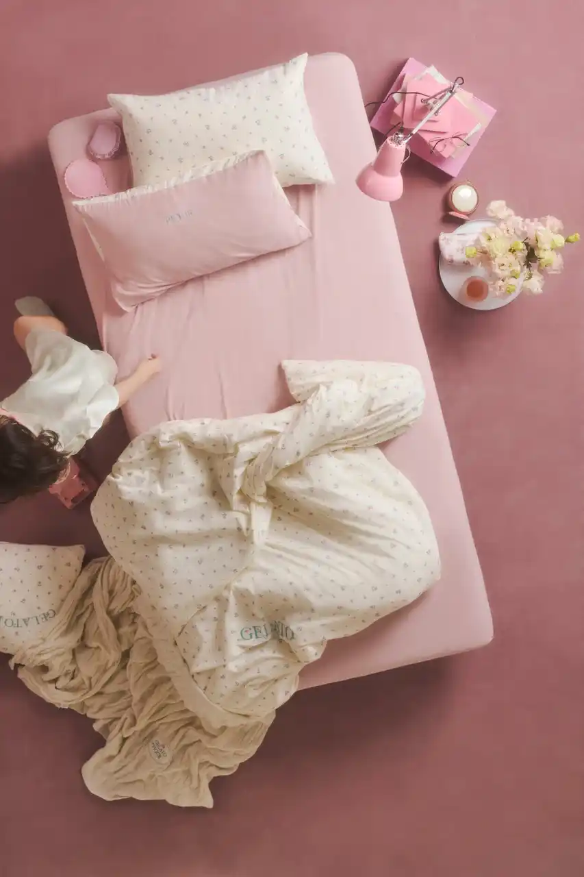株式会社マッシュスタイルラボ(本社 東京都千代田区/代表取締役社長:近藤広幸)が運営するルームウェアブランド「gelato pique(ジェラート ピケ)」の寝具ライン「gelato pique Sleep(ジェラート ピケー スリープ)」は、グローバルビジュアルに起用した「LE SSERAFIM(ルセラフィム)」のメンバーKIM CHAEWON(キム・チェウォン)が”新生活”シリーズの小花柄の寝具に包まれたビジュアルを、2026年1月27日(火)12:00(正午)より「ジェラート ピケ 公式オンラインストア」、マッシュグループ公式アプリ「MASH STORE」、ECデパートメントストア「USAGI ONLINE」にて公開いたします。 |