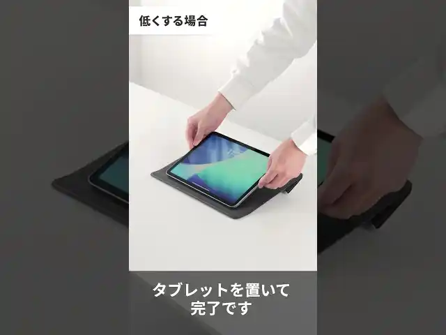 スタンドの立て方を変えることで、2段階の高さ(角度)調整が可能です。動画視聴やタイピング、ノートへの書き込みなど、作業内容に合わせて最適な視点に変更できます。タブレットだけでなく、ノートパソコンスタンドとしても利用でき、オンライン授業やテレワークなど幅広いシーンで活躍する汎用性の高いアイテムです。 |