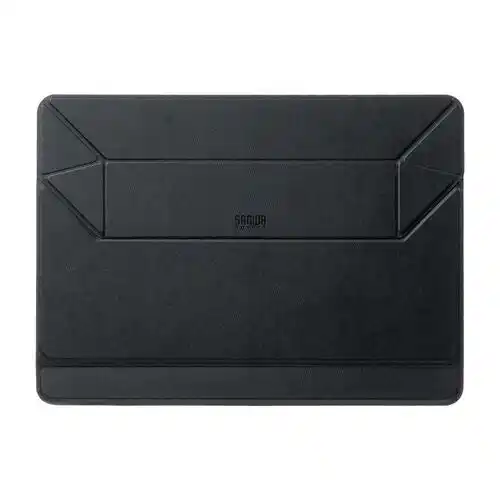 表面素材には、肌触りが良く高級感のあるPUレザーを採用しました。ソフトな質感ながら、使用時にはタブレットやPCをしっかりと支える十分な強度を備えています。機器と接触しても傷がつきにくく、また滑り止め効果もあるため、粘着剤などを使わずに置くだけで安定した設置が可能です。 |
