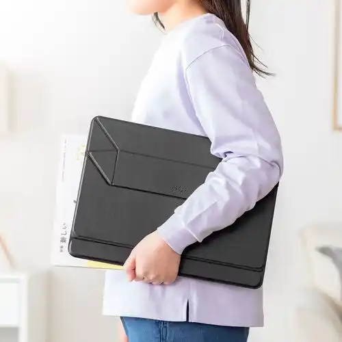 スタンドの立て方を変えることで、2段階の高さ(角度)調整が可能です。動画視聴やタイピング、ノートへの書き込みなど、作業内容に合わせて最適な視点に変更できます。タブレットだけでなく、ノートパソコンスタンドとしても利用でき、オンライン授業やテレワークなど幅広いシーンで活躍する汎用性の高いアイテムです。 |