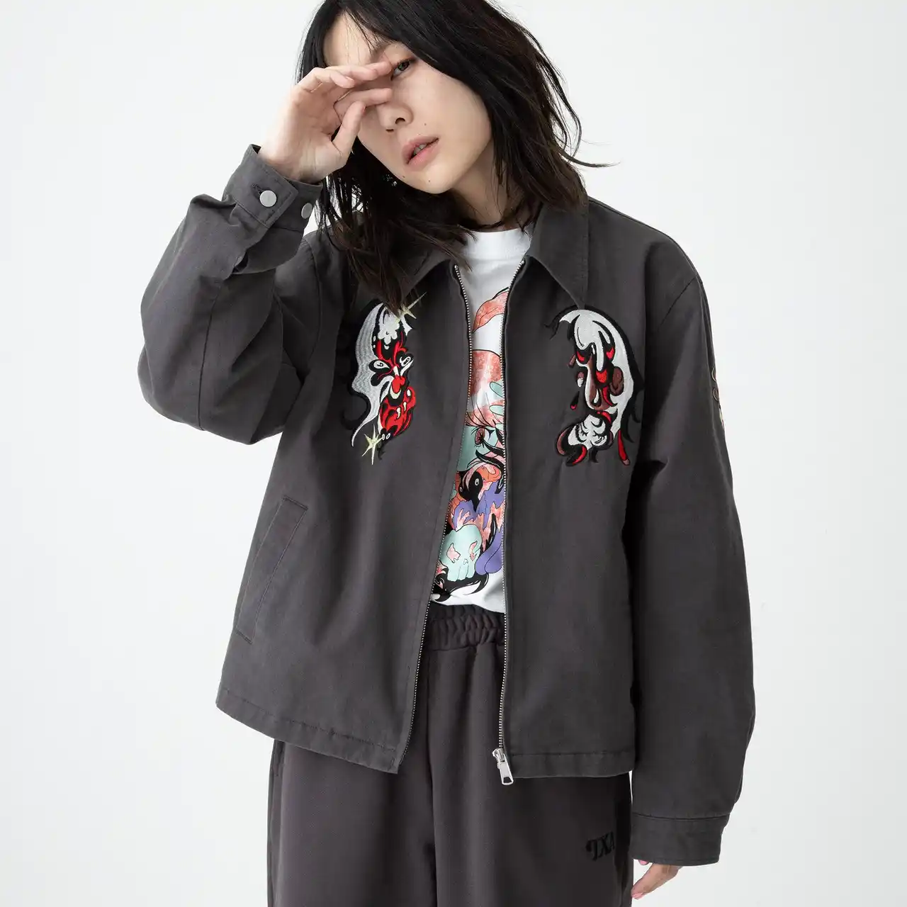 本コラボレーションでは、今回のために描き下ろされたグラフィックを刺繍で施したジャケット・ス |