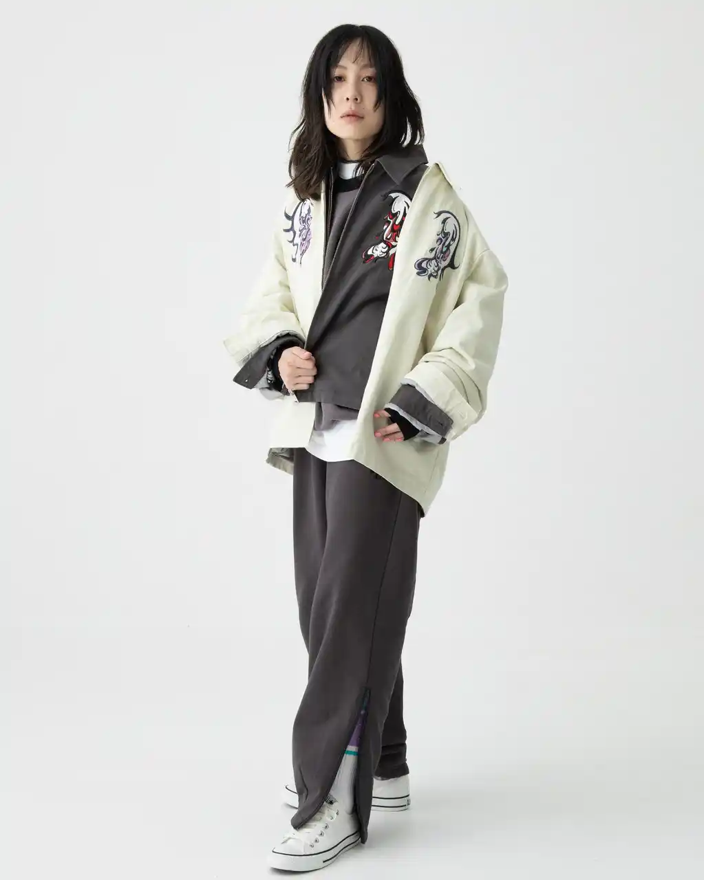 アイテム:Embroidery Jacket、Embroidery Sweatpants |